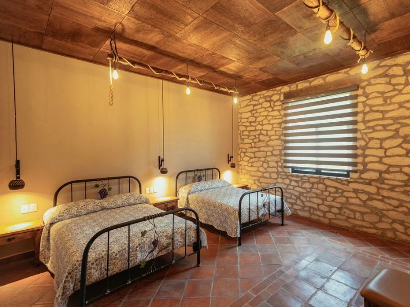 - Servicios 2 Camas matrimoniales, Aire acondicionado / Calefacción, Baño privado con regadera, Botella de vino de cortesía, Botellas de agua de cortesía, Cafetera con cápsulas de cortesía, Desayuno americano incluido, Kit de baño, Minibar (con costo adicional), Servicio de limpieza, Toallas faciales y de baño, Vista a jardines o viñedos, Vista panorámica al Valle de Barranquillas, WiFi gratuito